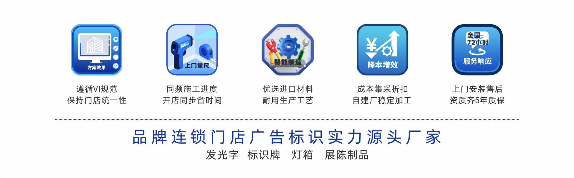 20余年專(zhuān)注幕墻發(fā)光字、連鎖門(mén)店標(biāo)識(shí)、精工字、停車(chē)場(chǎng)標(biāo)識(shí)等應(yīng)用場(chǎng)景的標(biāo)識(shí)牌、發(fā)光字、燈箱等廣告制品設(shè)計(jì)制作安裝施工維護(hù)于一體的綜合性廣告標(biāo)識(shí)服務(wù)商。