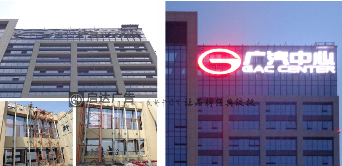 · 安裝施工:啟達廣告是較早涉及并解決高空玻璃幕墻發光字 logo 招牌安裝技術落地的企業之一,針對廣汽中心辦公大樓這樣的百米以上高樓外立面發光字工程,其施工團隊經驗豐富,且在安全施工檢測方面有系統流程化設計。會嚴格遵循安全規范,可能按照 “基礎預埋件→鋼結構焊接→字體驗收” 的三階段質檢流程進行安裝,全程影像留檔,確保安裝過程安全可靠。